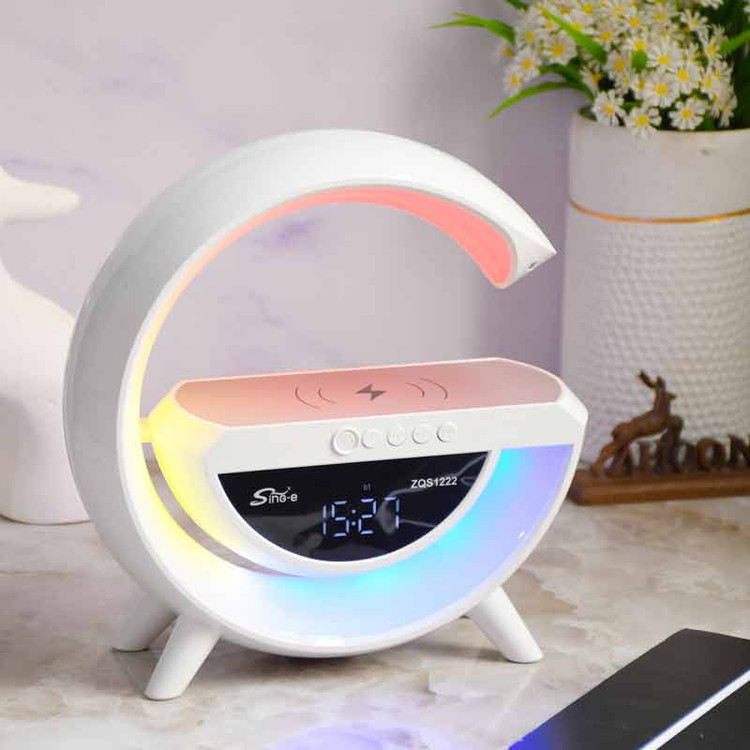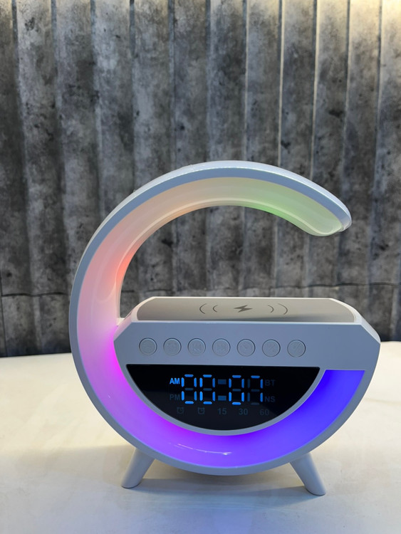 طراحی این اسپیکر بلوتوثی به شکل حرف G انگلیسی است که یک قسمت برای قرار دادن موبایل برای شارژ وایرلس موبایل شما را دارد.